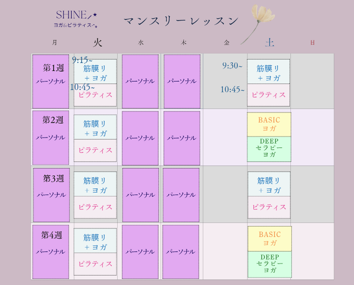 ※インストラクターの都合で、お休みをいただく日があることをご了承ください